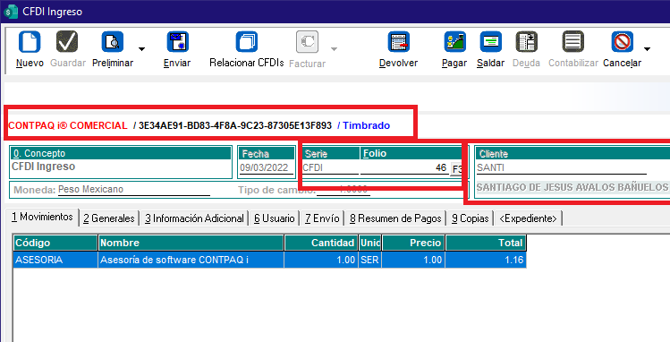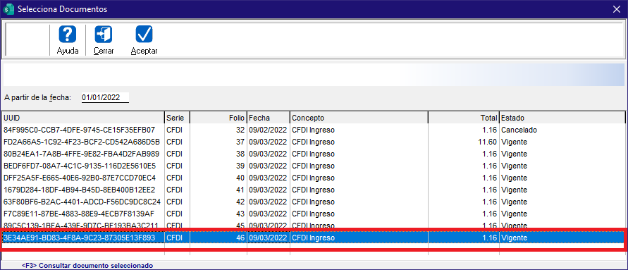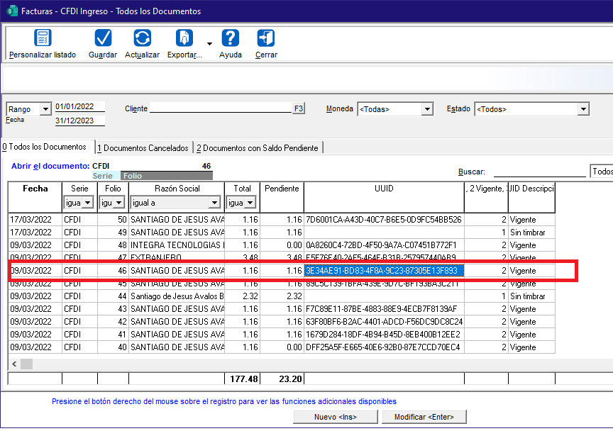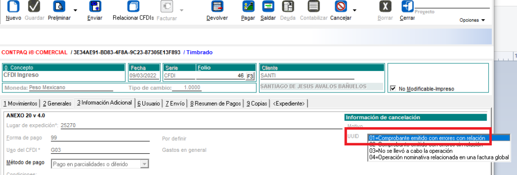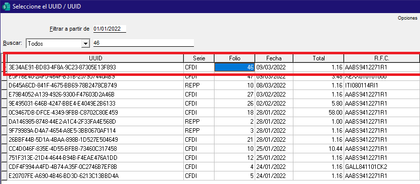 En este ejemplo la factura CFDI-46.