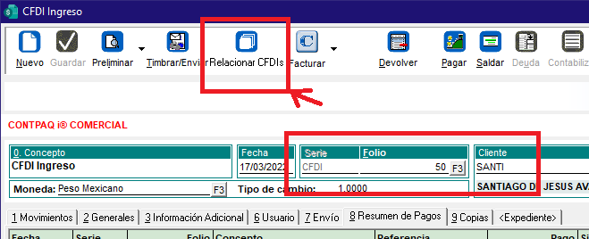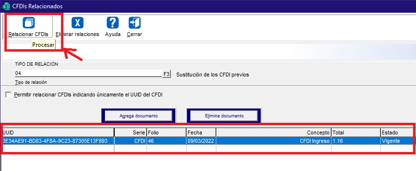 No debemos olvidar relacionar la factura que estamos sustituyendo en el botón «Relacionar CFDI».