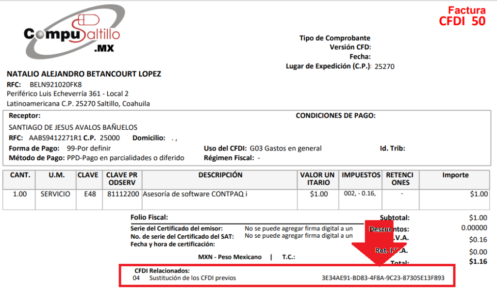Es decir, la factura CFDI- esta sustituyendo a la factura CFDI-50.