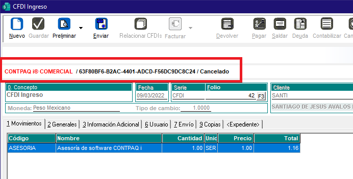 Y finalmente debe aparecer la leyenda de Cancelado o en su caso Cancelación en proceso.