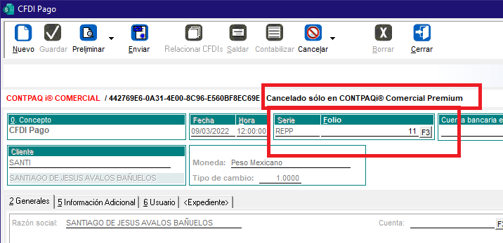 Ahora el estatus es Cancelado sólo en CONTPAQi Comercial Premium.