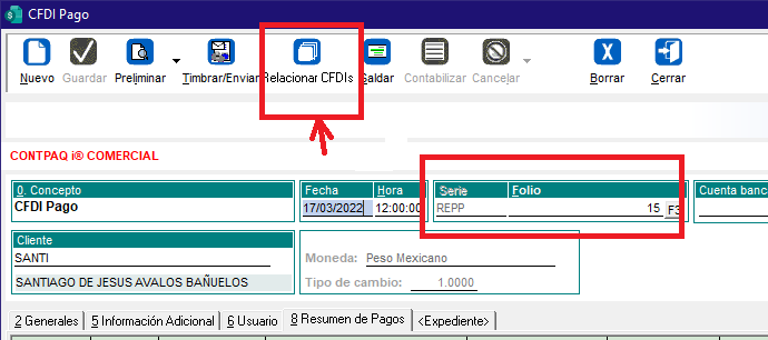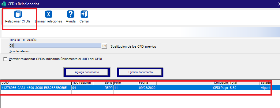 No debemos olvidar relacionar la factura que estamos sustituyendo en el botón «Relacionar CFDI».