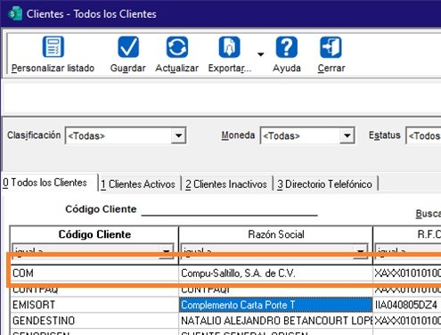 Dar doble clic en el cliente que deseas asignar el complemento.