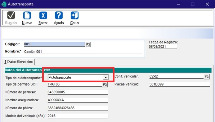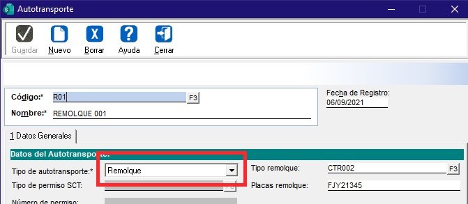 Tipo de Transporte: Son 2 opciones autotransporte o remolque.